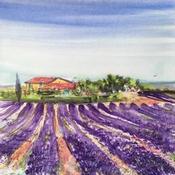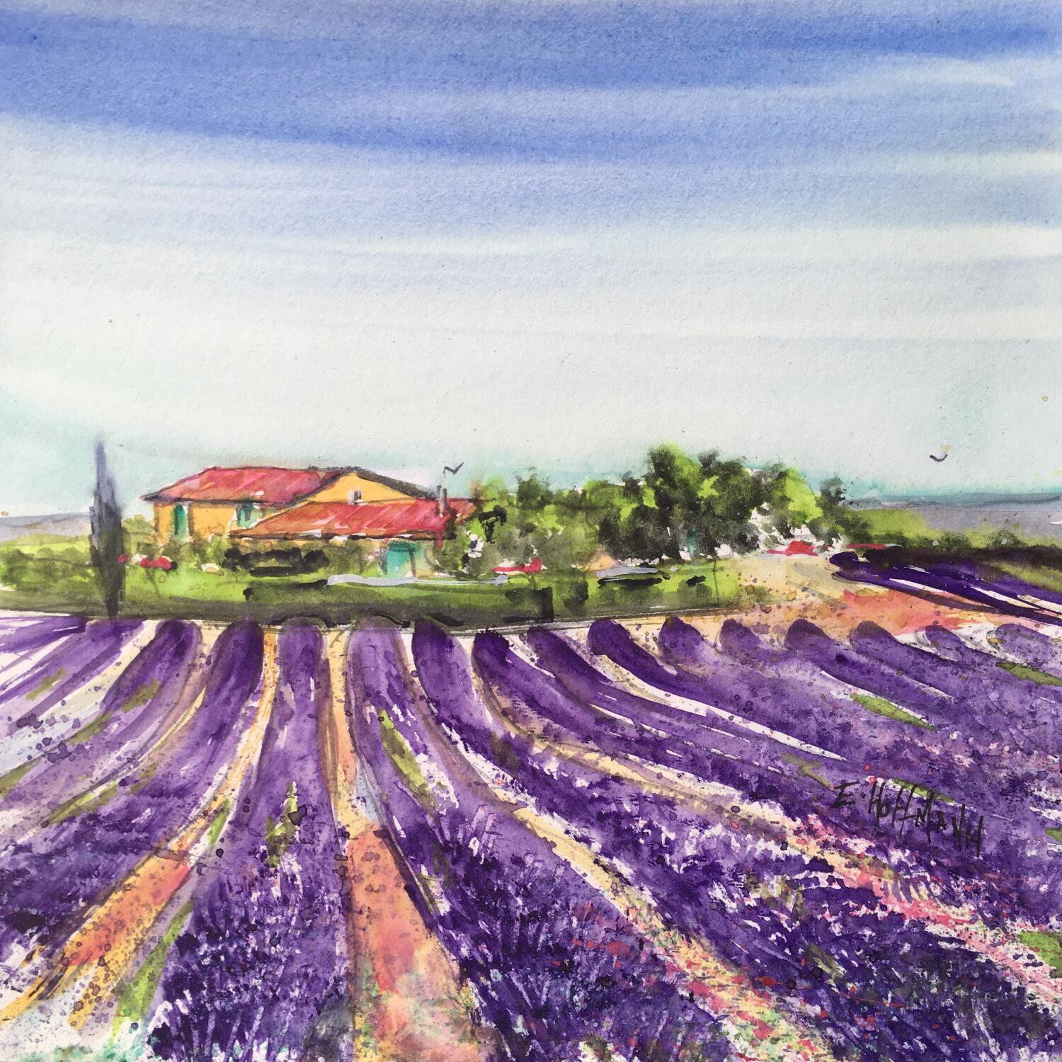 Die Künstlerin verwendete die Aquarelltechnik, um dieses kleinformatige Gemälde auf Papier im figurativen Stil mit dem Thema Provence zu schaffen.