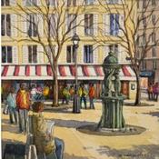 La café Bonaparte à Saint-GermainGemälde La café Bonaparte à Saint-Germain von Decoudun Jean charles | Gemälde Figurativ Urban Aquarell