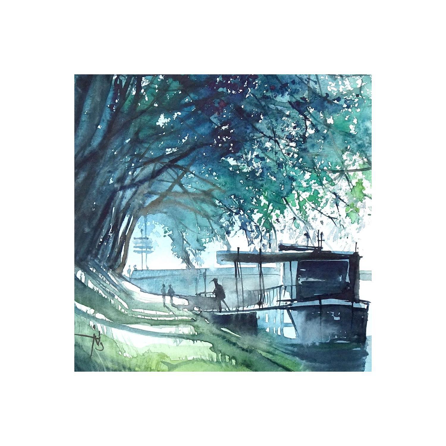 Der Künstler verwendete Aquarell auf Papier, um dieses Kleine Gemälde anzufertigen.