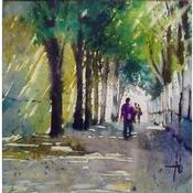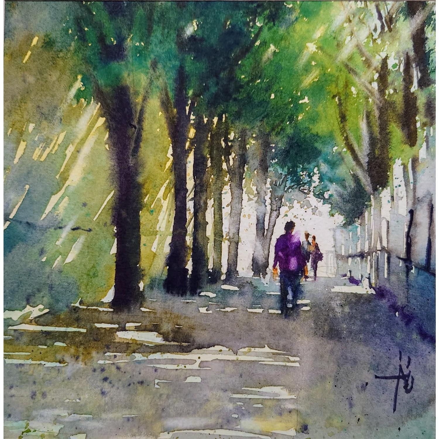 Ruelles boiséesGemälde Ruelles boisées von Abbatucci Violaine | Gemälde Figurativ Aquarell