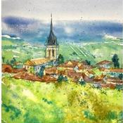 Der Künstler verwendete Aquarell auf Papier, um dieses Kleine Gemälde zum Thema "Architektur, Landschaften, Natur" anzufertigen.