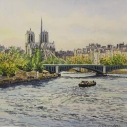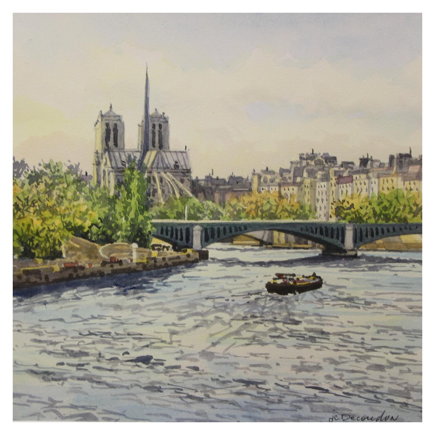 Paris, Notre-Dame et le Pont de Sully Gemälde Paris, Notre-Dame et le Pont de Sully  von Decoudun Jean charles | Gemälde Figurativ Urban Aquarell