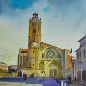Der Künstler verwendete Aquarell, um dieses Kleine Gemälde zum Thema "Urban" anzufertigen.