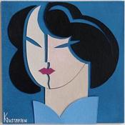 Der Künstler verwendete Collage, Acryl auf Holz, um dieses Kleine Gemälde zum Thema "Porträt" anzufertigen.