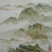 Der Künstler verwendete auf Papier, um dieses Kleine Gemälde zum Thema "Landschaften" anzufertigen.