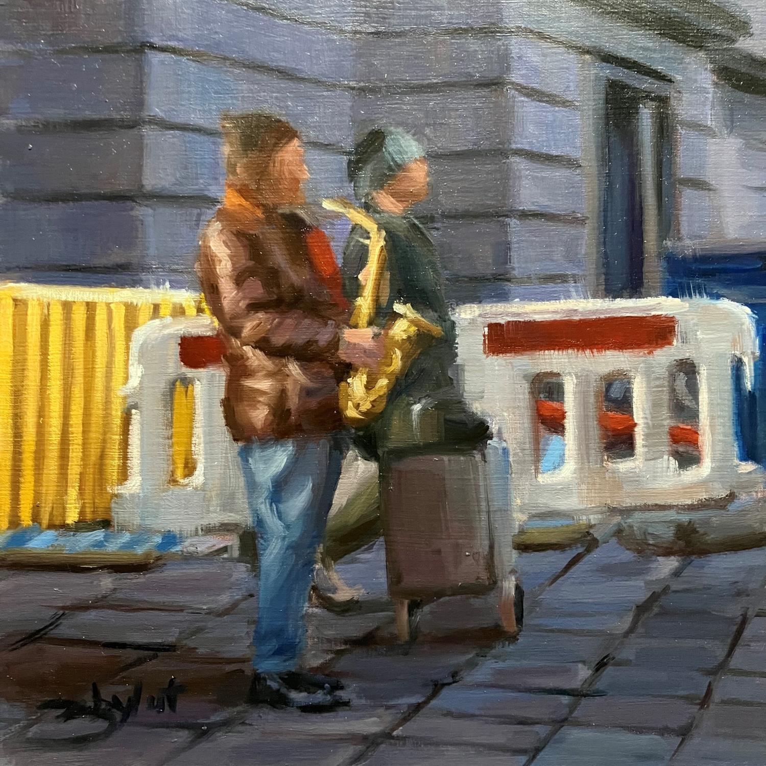 Dieses einzigartige und originale zeitgenössische Kunstwerk "Musique de rue" in dem Stil "Figurativ" wurde von dem zeitgenössischen Künstler Zbylut Ludovic kreiert.