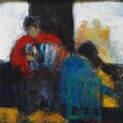 Der Künstler verwendete Öl auf Leinwand, um dieses Kleine Gemälde zum Thema "Kinder, Alltagsszenen" anzufertigen.