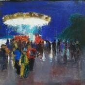 Der Künstler verwendete Öl auf Leinwand, um dieses Kleine Gemälde zum Thema "Landschaften, Gesellschaft" anzufertigen.