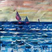 Gemälde Boats on the Horizon  von Georgieva Vanya | Gemälde Figurativ Landschaften Öl