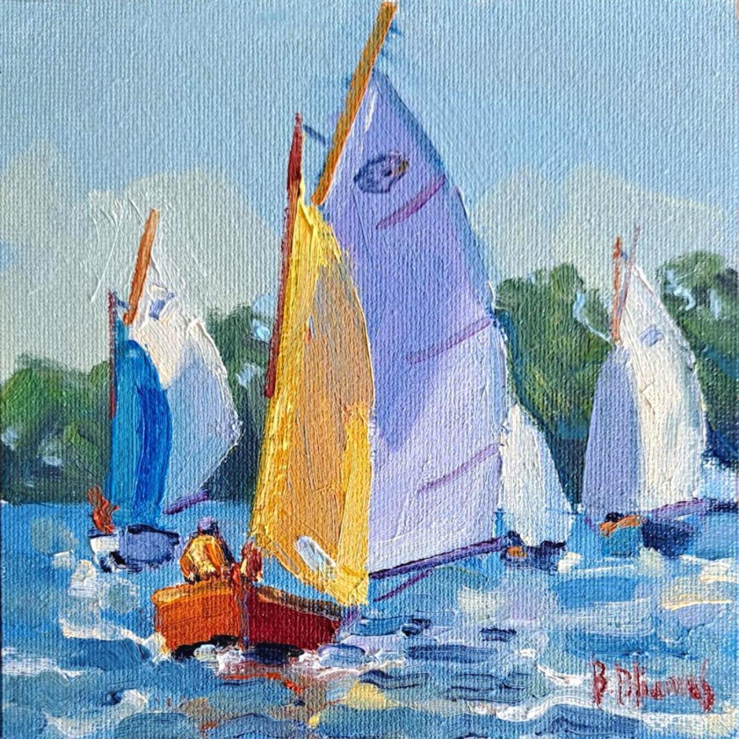 Der Künstler verwendete Öl auf Leinwand, um dieses Kleine Gemälde zum Thema "Marine" anzufertigen.