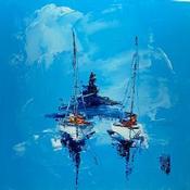 Der Künstler verwendete Öl auf Papier, um dieses Kleine Gemälde zum Thema "Marine" anzufertigen.