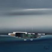 Der Künstler verwendete Öl auf Leinwand, um dieses Kleine Gemälde zum Thema "Marine" anzufertigen.