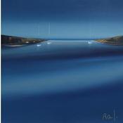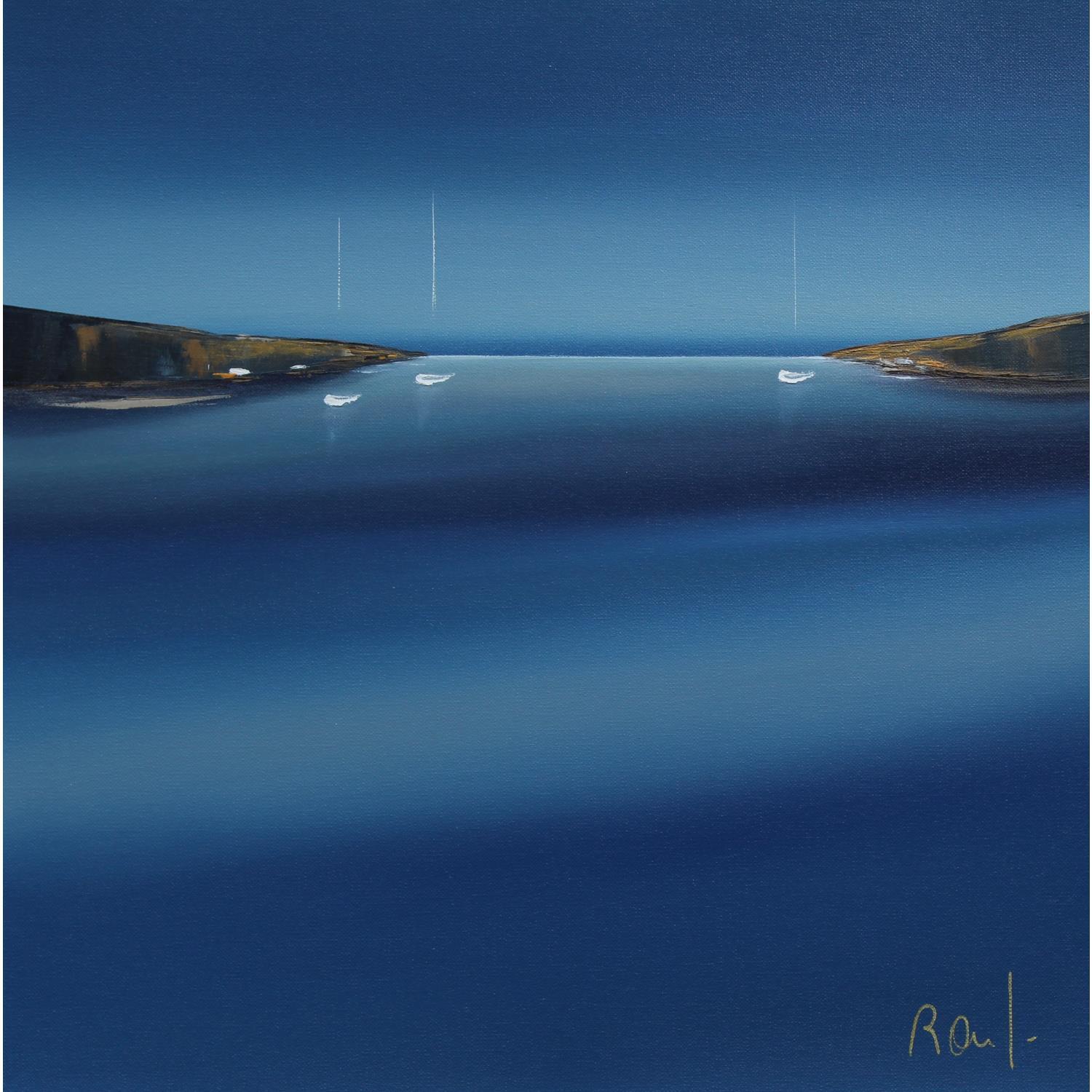Der Künstler verwendete Öl auf Papier, um dieses Kleine Gemälde zum Thema "Marine, Minimalistisch" anzufertigen.