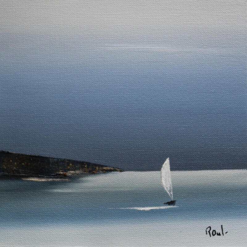 Der Künstler verwendete Öl auf Papier, um dieses Kleine Gemälde zum Thema "Marine, Minimalistisch" anzufertigen.