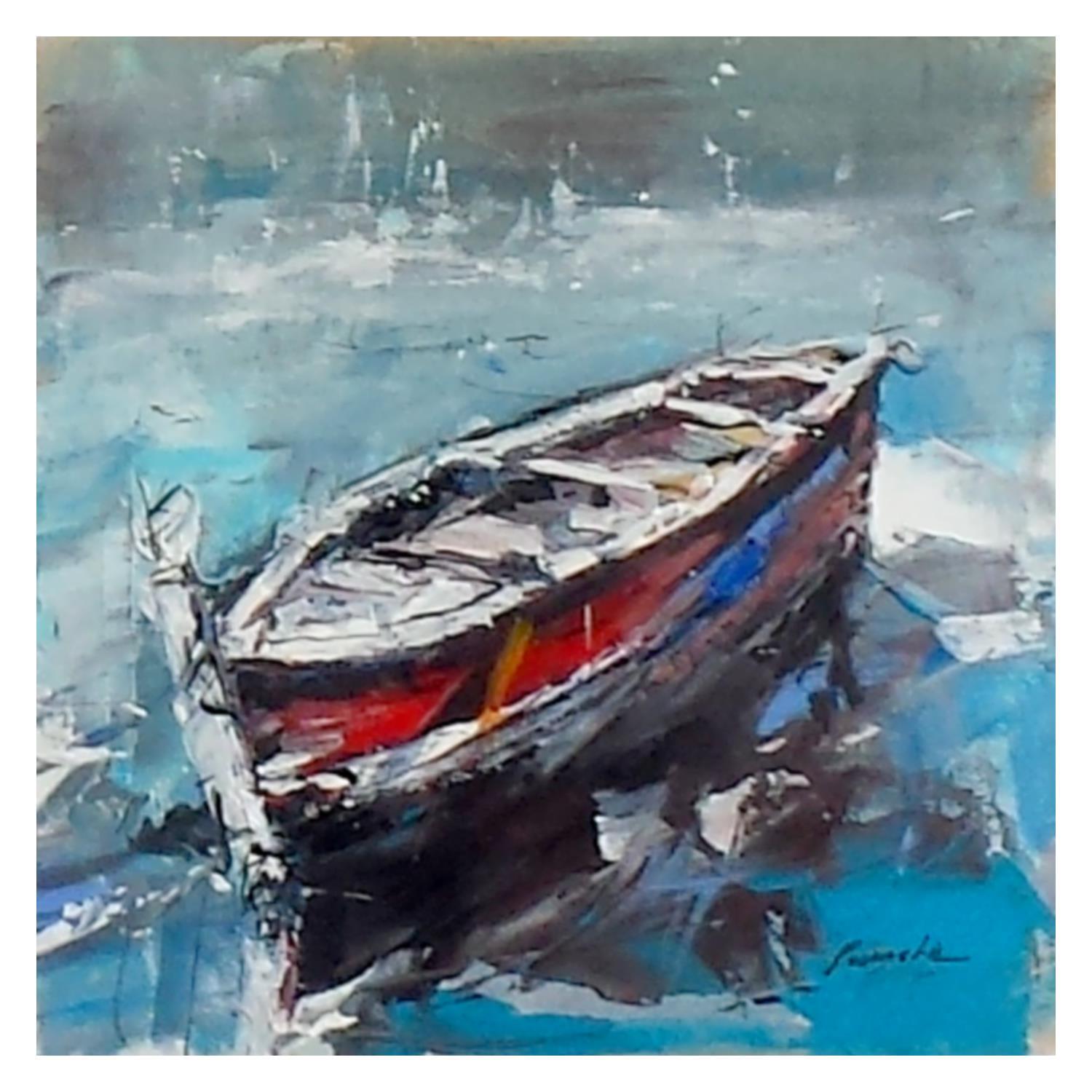 Der Künstler verwendete Öl, Acryl auf Papier, um dieses Kleine Gemälde zum Thema "Marine" anzufertigen.