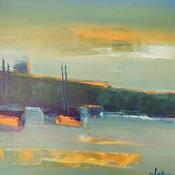 Der Künstler verwendete Öl auf Papier, um dieses Kleine Gemälde zum Thema "Marine" anzufertigen.