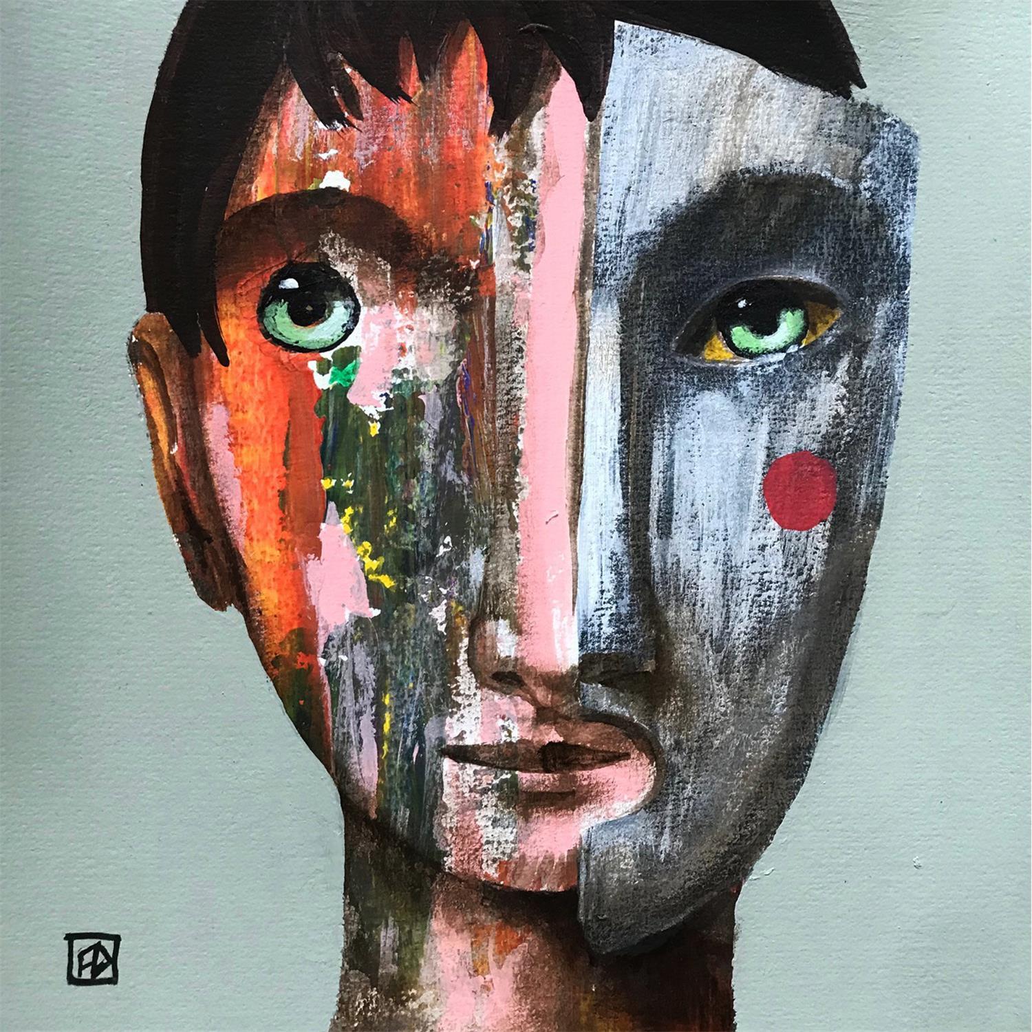 Fabien, der an der Oper von Bordeaux als Bühnenbildner und Maler ausgebildet wurde, lernte zunächst audiovisuelle Techniken, insbesondere die der Fotografie, kennen, bevor er sich später für eine vielseitige Ausbildung im Bereich der bildenden Kunst entschied. Er ist in der Beherrschung sämtlicher malerischer Fertigkeiten geübt - von der klassischen Malerei bis hin zum Trompe-l'oeil -, und seine persönliche Kunst offenbart sich in der Ausführung einer originellen zeitgenössischen figurativen Malerei, die von Traumbildern geprägt ist. Fabiens Werke sind Fragmente von Individuen, die von einer ebenso zeitlosen wie fantastischen Poesie durchdrungen sind, und versetzen uns in eine "spiegelbildliche" Betrachtung, bei der man sich fragen kann, wer von beiden den anderen anstarrt?