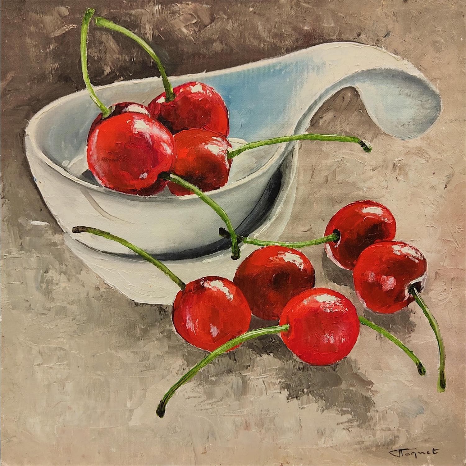 Dieses einzigartige und originale zeitgenössische Kunstwerk "Coupelle de cerises" in dem Stil "Figurativ" wurde von dem zeitgenössischen Künstler Tognet kreiert.