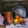 Der Künstler verwendete Öl auf Leinwand, um dieses Kleine Gemälde zum Thema "Stillleben" anzufertigen.