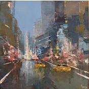 Der Künstler verwendete Öl auf Leinwand, um dieses Kleine Gemälde zum Thema "Urban, Architektur" anzufertigen.
