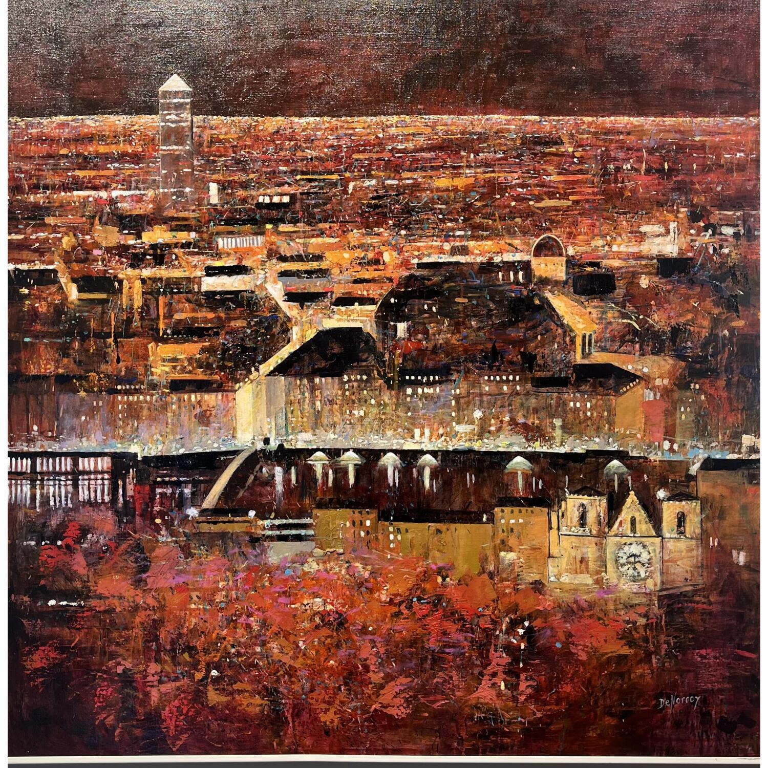 Dieses einzigartige und originale zeitgenössische Kunstwerk "La ville d'or" in dem Stil "Figurativ" wurde von dem zeitgenössischen Künstler De Norroy Georges Emile kreiert.