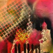 Der Künstler verwendete Öl auf Leinwand, um dieses Kleine Gemälde zum Thema "Urban" anzufertigen.