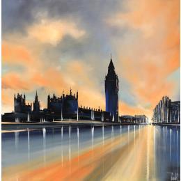 Der Künstler verwendete Öl auf Leinwand, um dieses Große Gemälde zum Thema "Urban" anzufertigen.