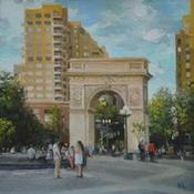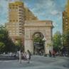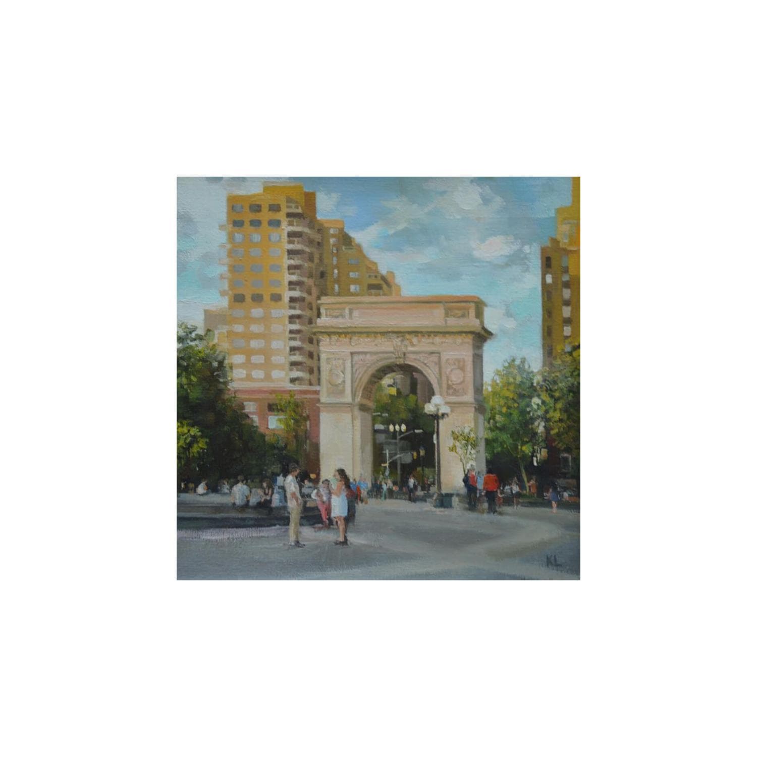 Der Künstler verwendete Öl, um dieses Kleine Gemälde zum Thema "Urban" anzufertigen.