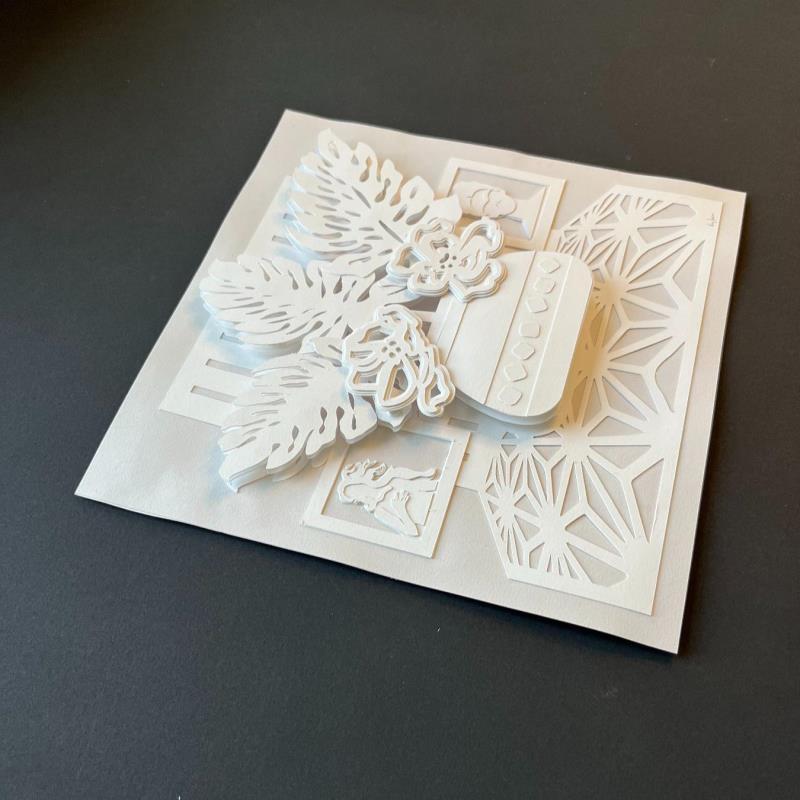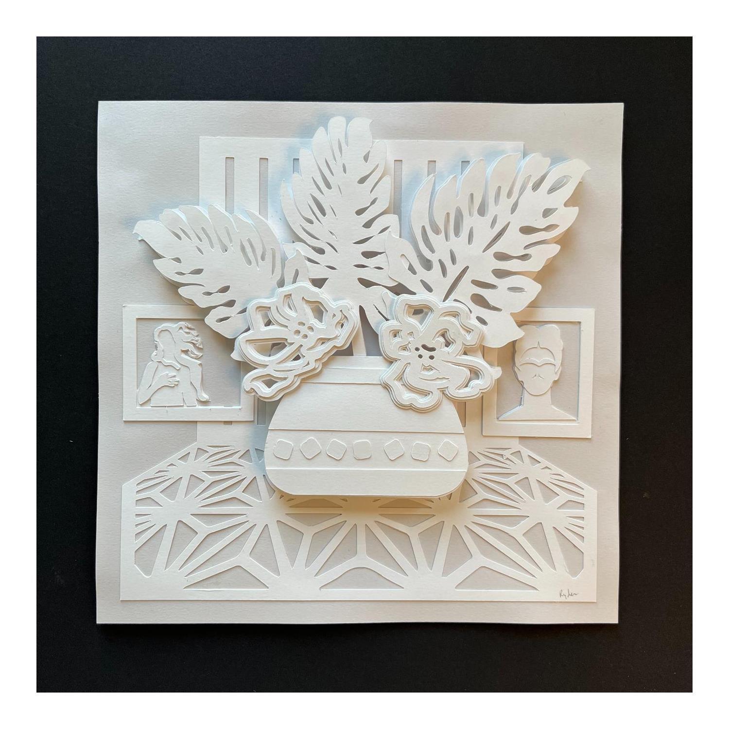 Der Künstler hat viele Schichten von Papier verwendet, um dieses besondere, kleinformatige Werk zu schaffen