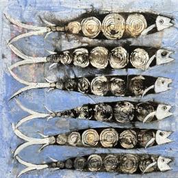 Les poissons bleusGemälde Les poissons bleus von Colombo Cécile | Gemälde Figurativ Tiere Acryl Pastell