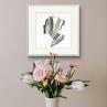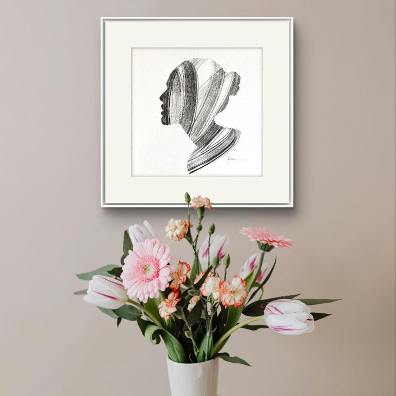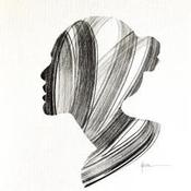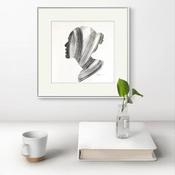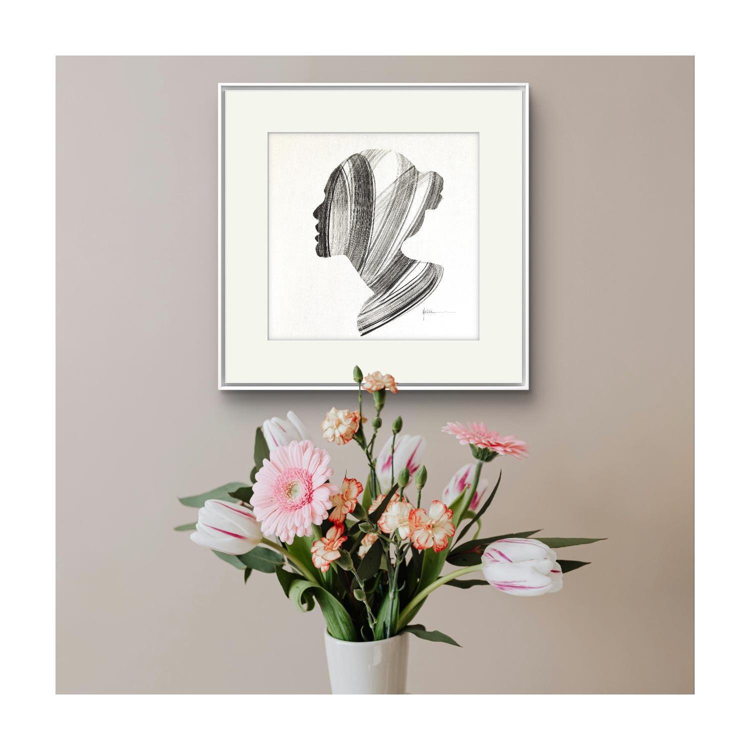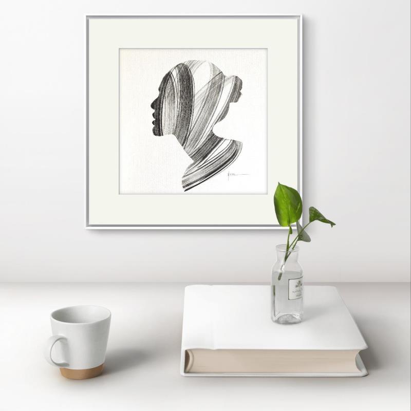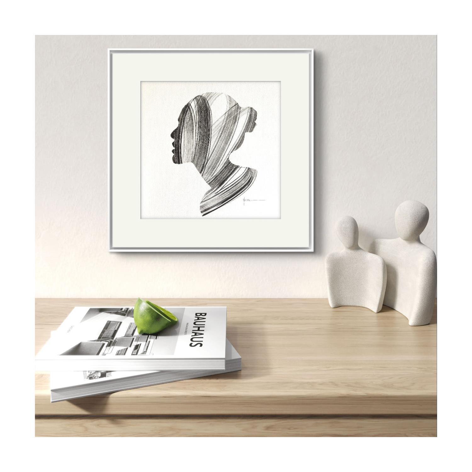 Der Künstler verwendete Tinte auf Papier, um dieses Kleine Gemälde zum Thema "Minimalistisch, Schwarz & Weiß, Porträt" anzufertigen.