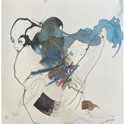 Der Künstler verwendete Tinte auf Papier, um dieses Kleine Gemälde zum Thema "Minimalistisch, Akt" anzufertigen.