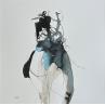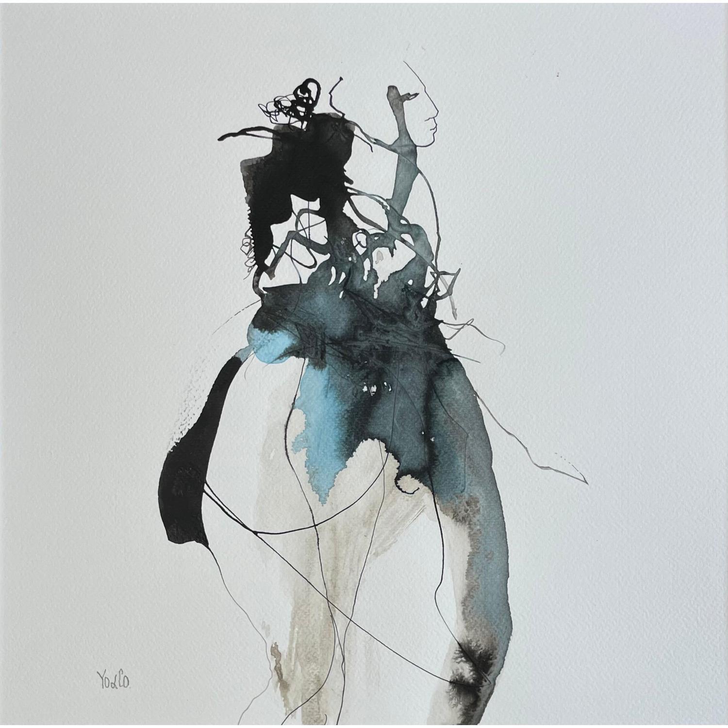 Der Künstler verwendete Tinte auf Papier, um dieses Kleine Gemälde zum Thema "Minimalistisch, Akt" anzufertigen.