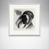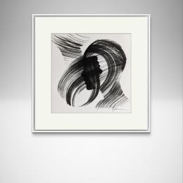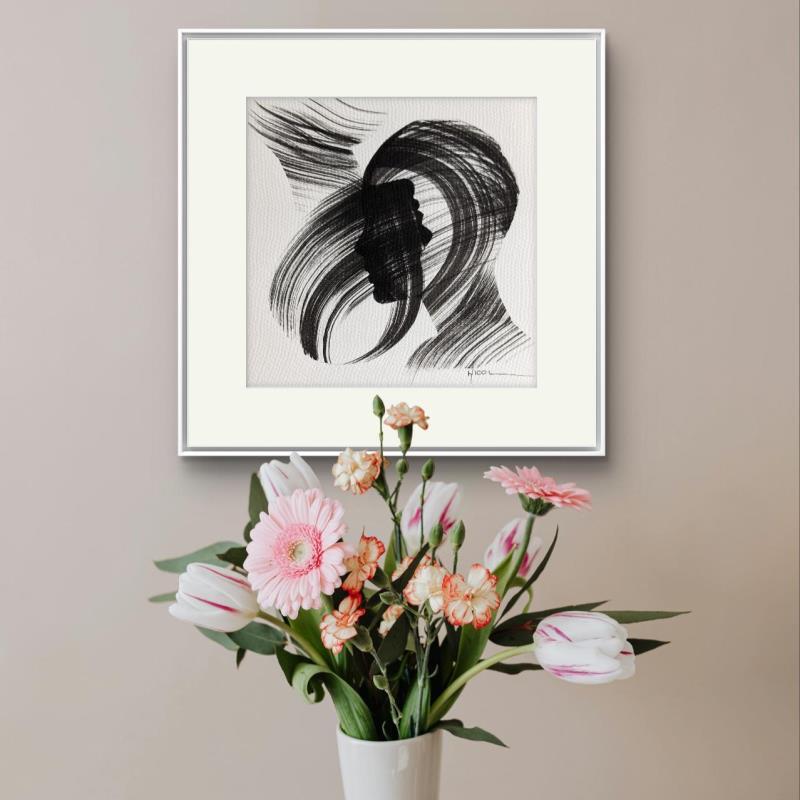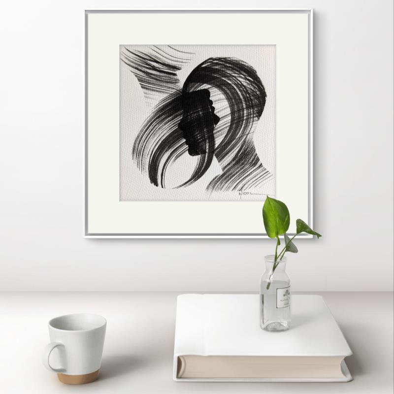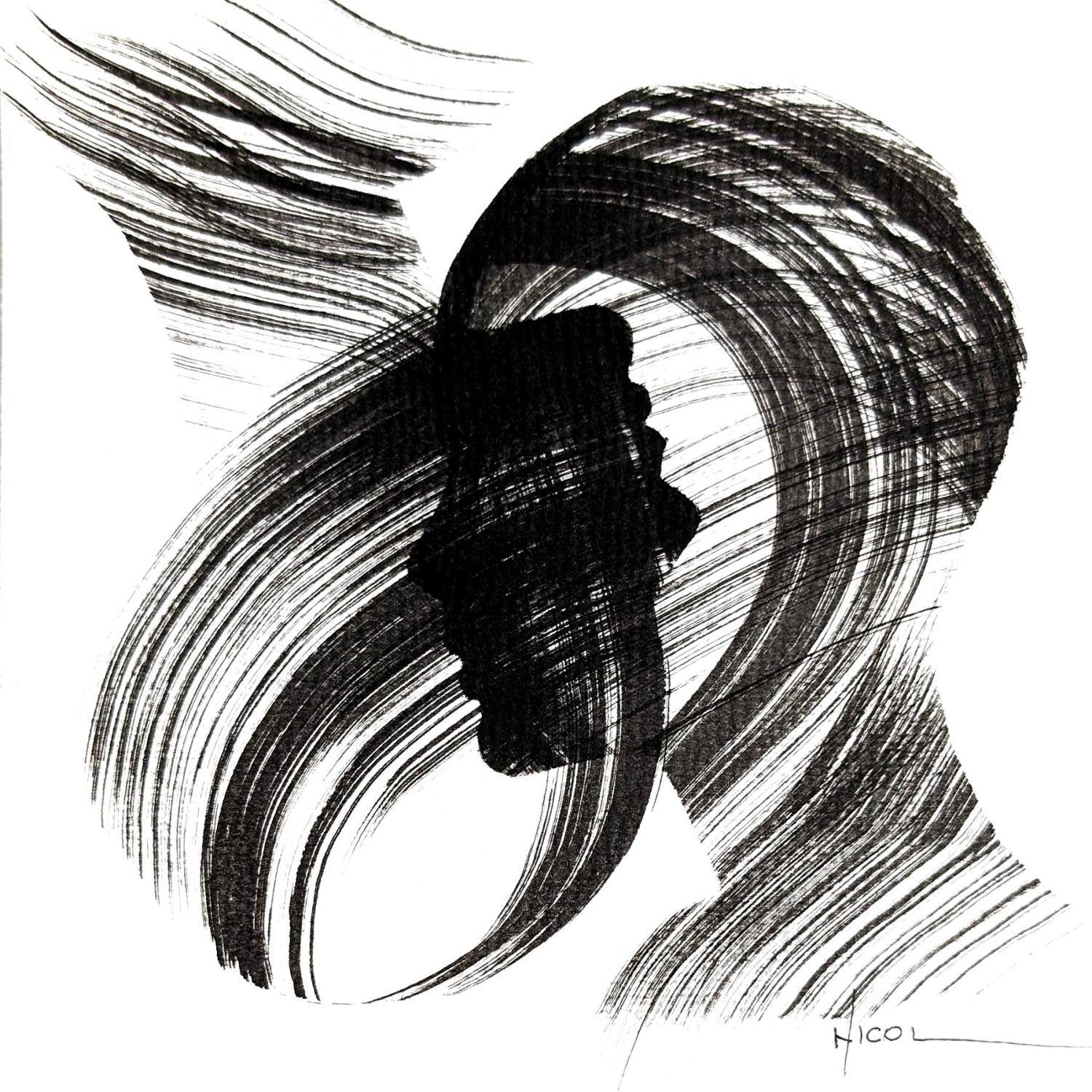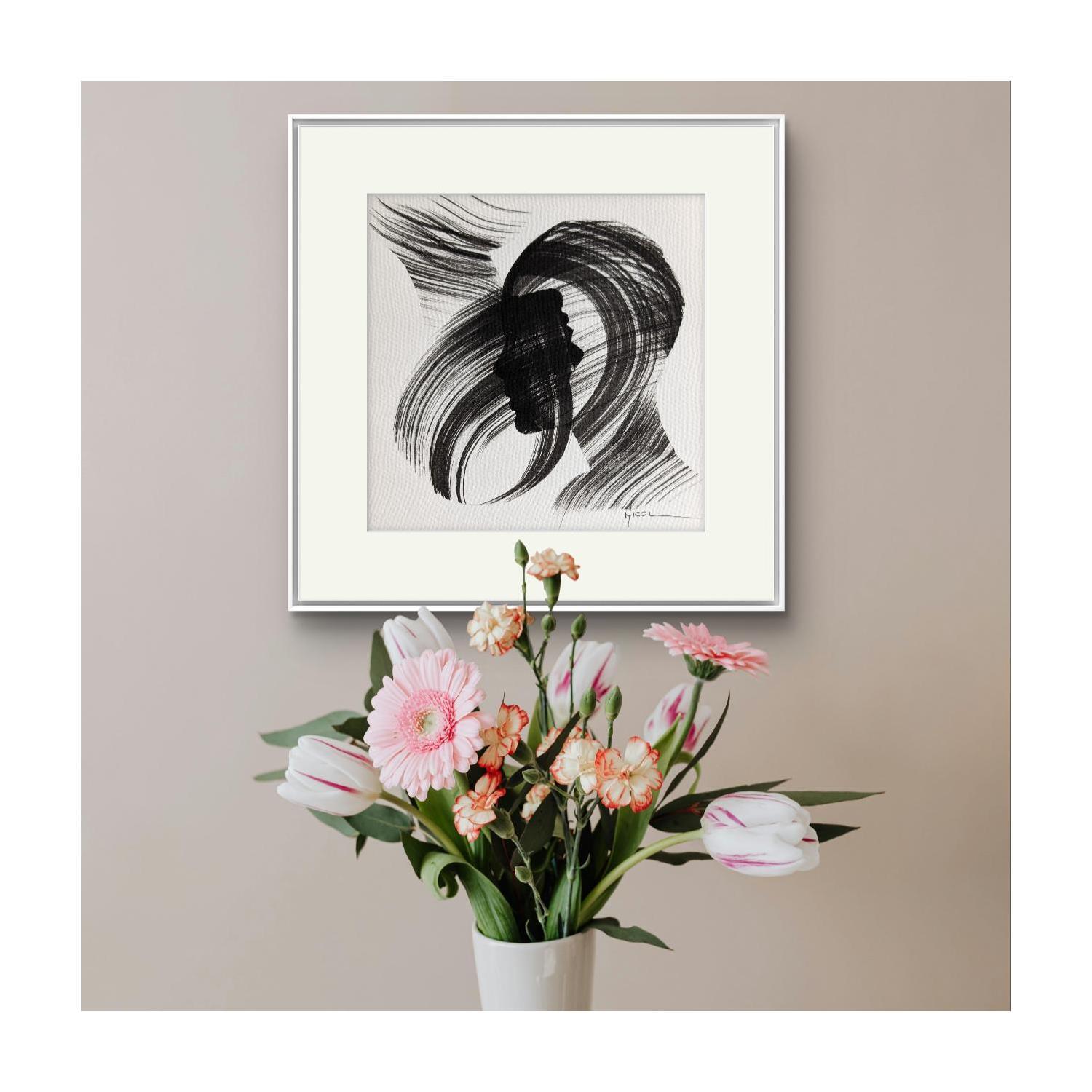 Der Künstler verwendete Tinte, Papier auf Papier, um dieses Kleine Gemälde zum Thema "Schwarz & Weiß, Porträt, Minimalistisch" anzufertigen.