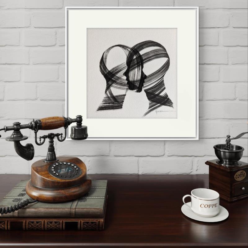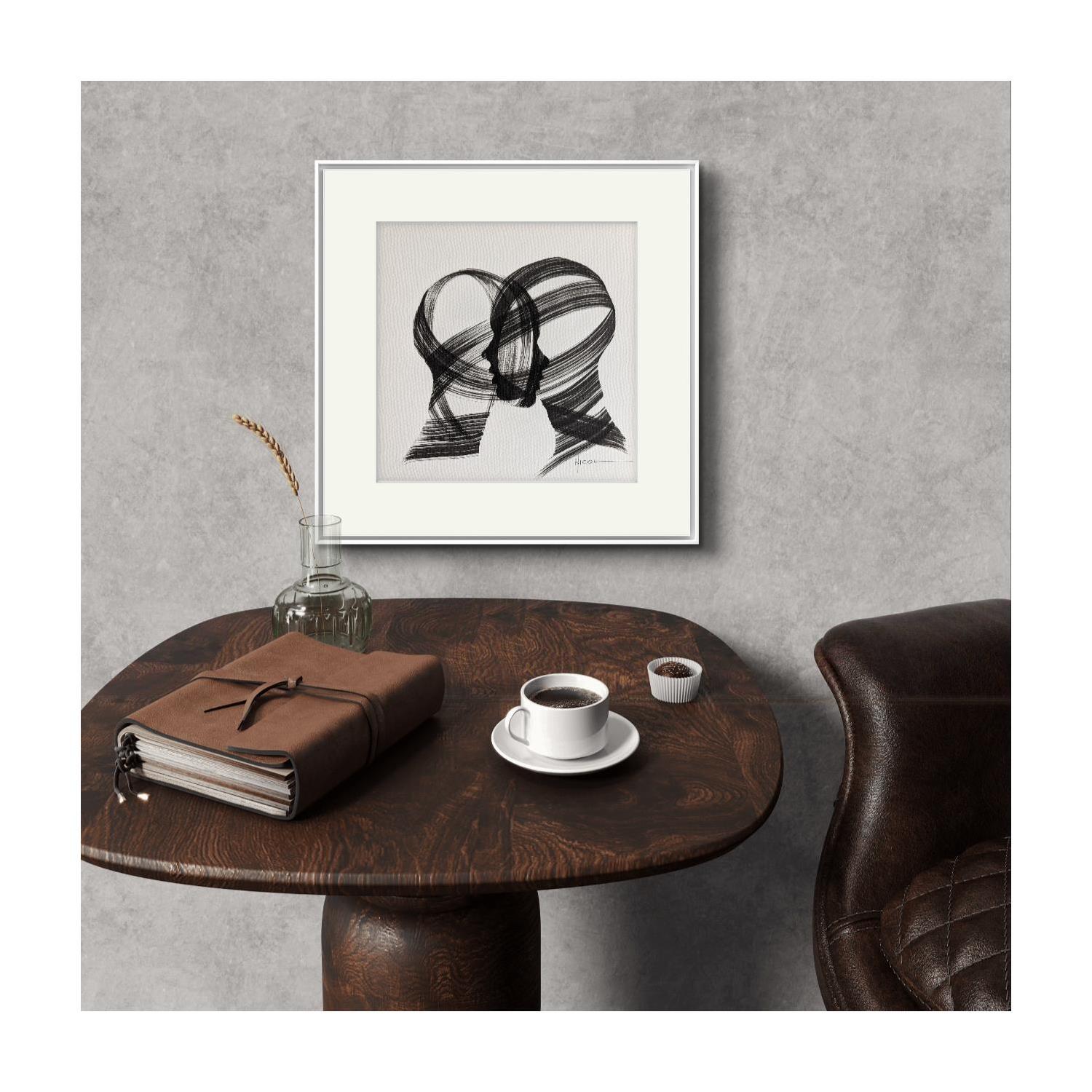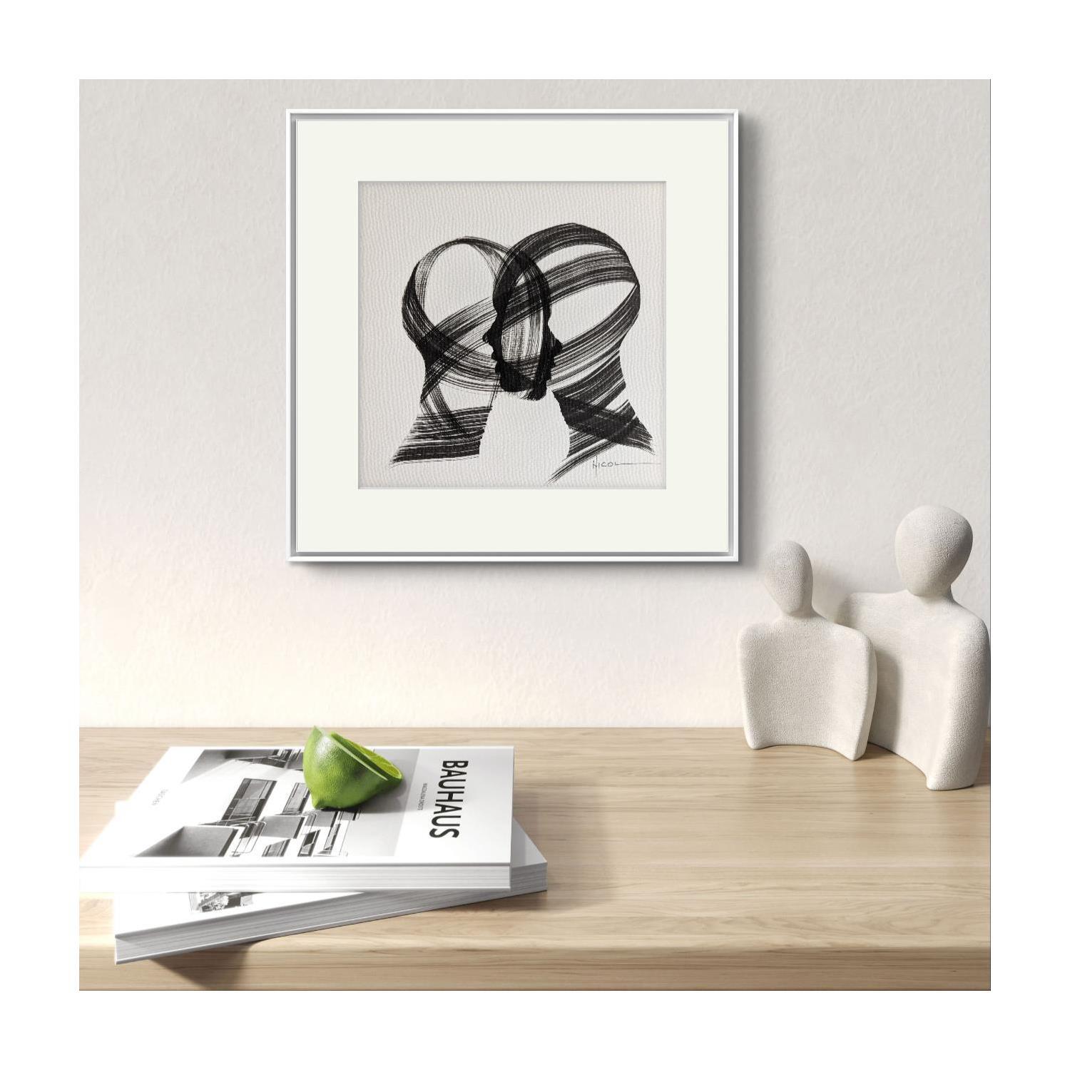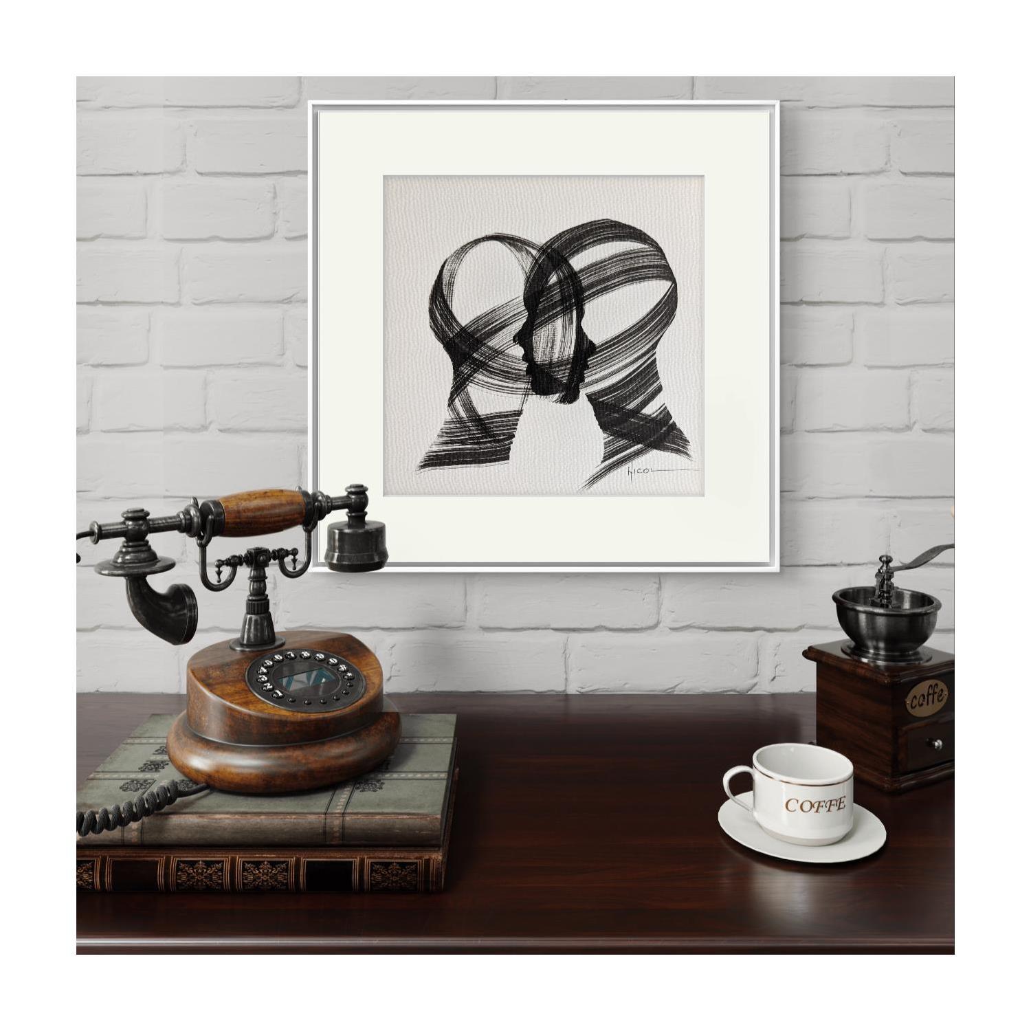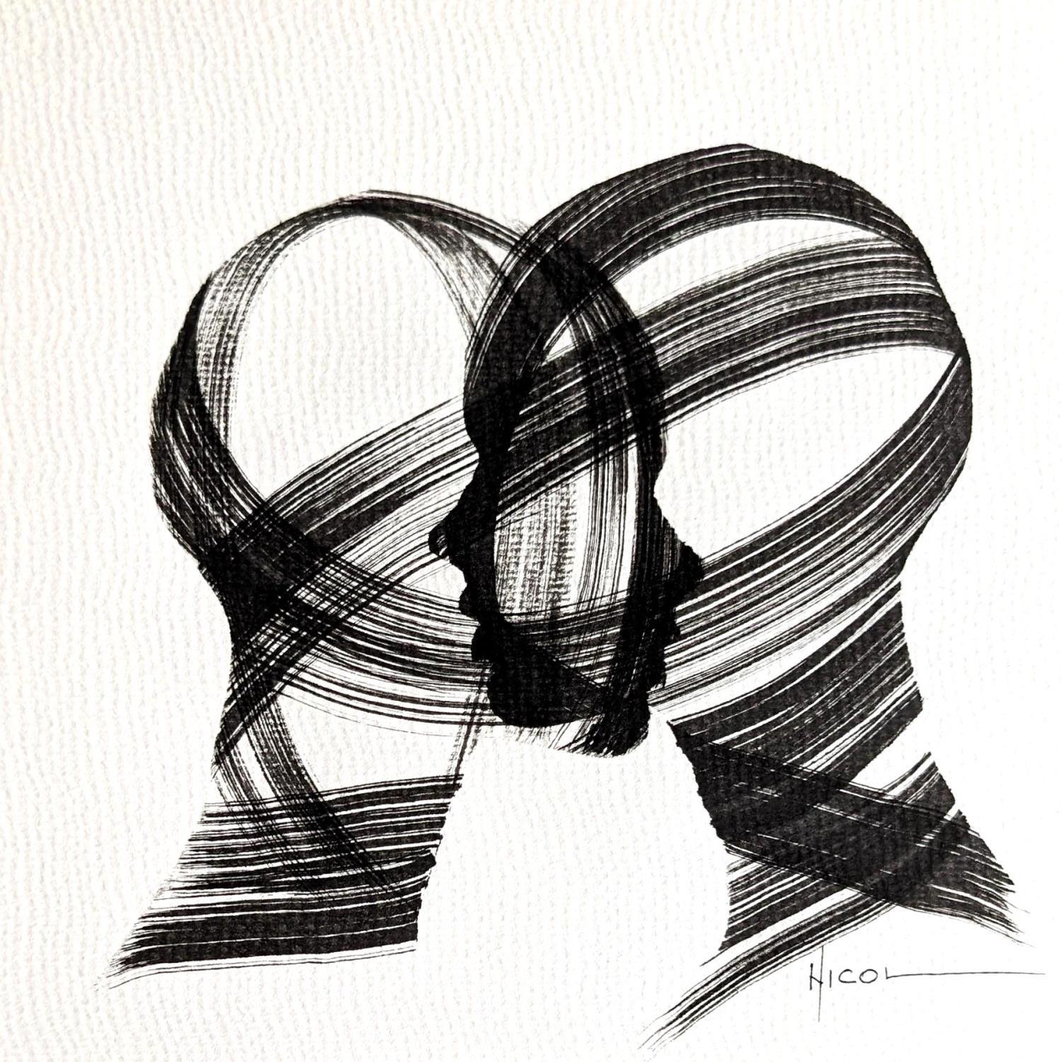 Gemälde Time CCCXXVII von Nicol | Gemälde Figurativ Porträt Minimalistisch Schwarz & Weiß Tinte
