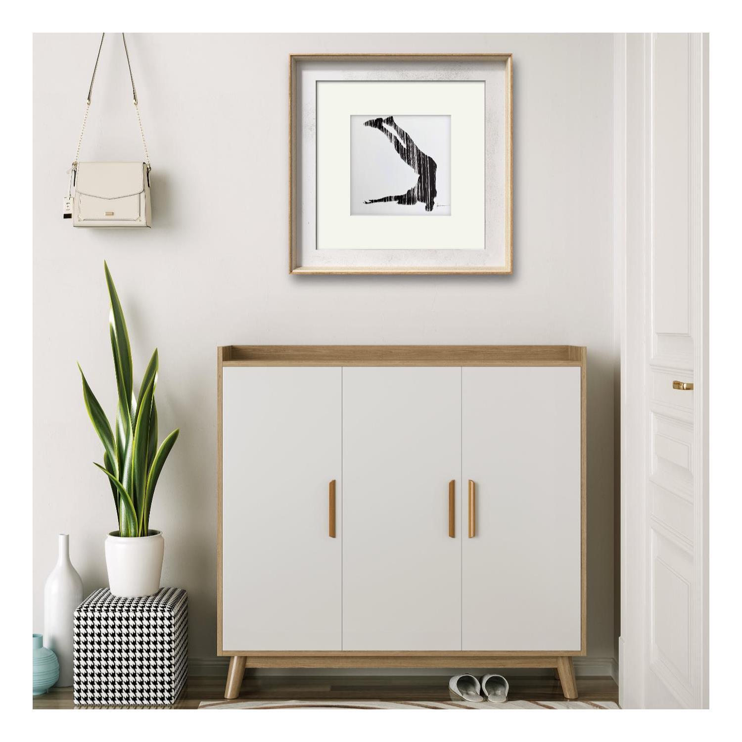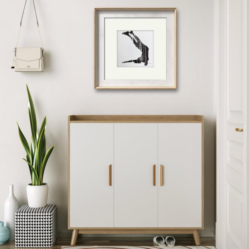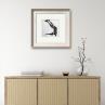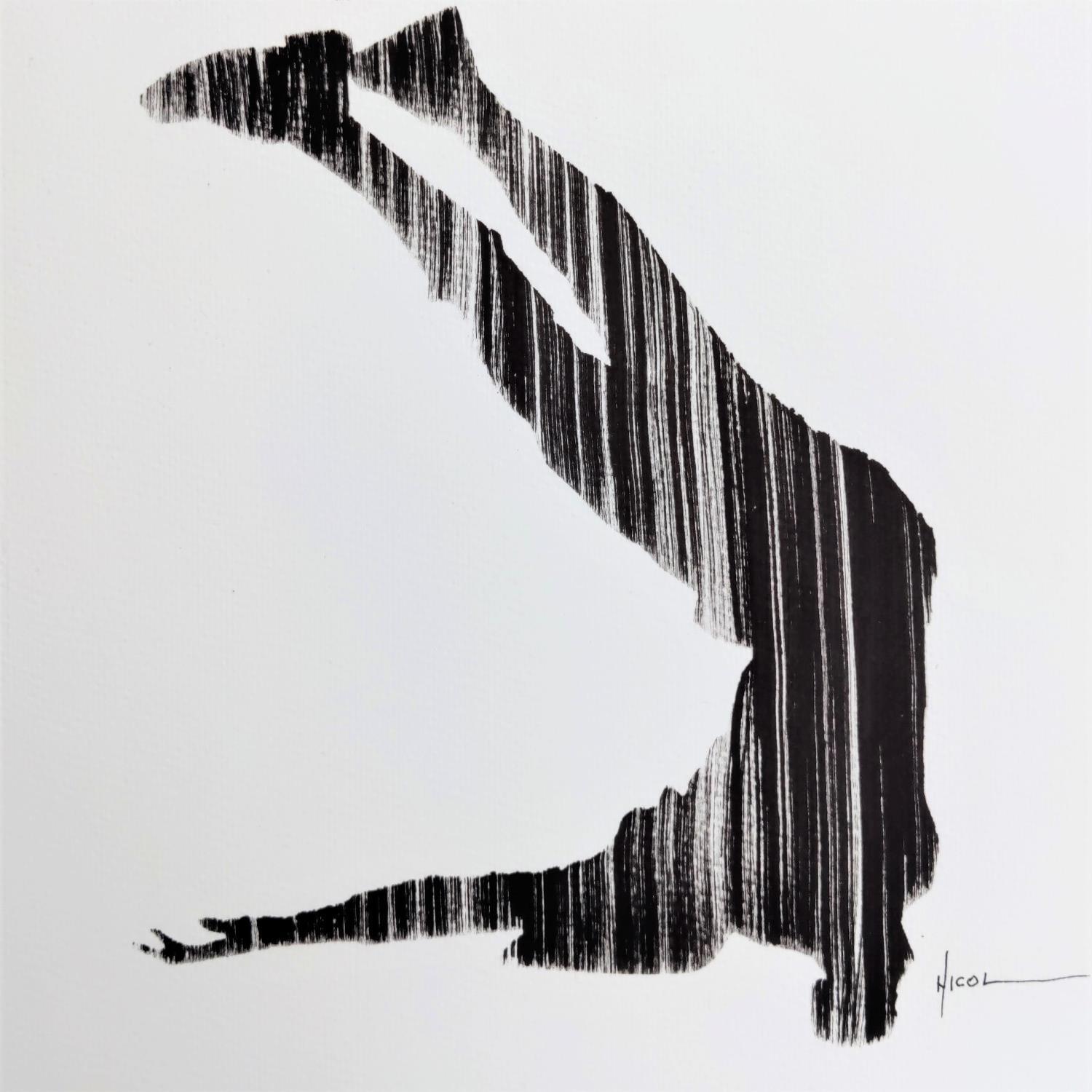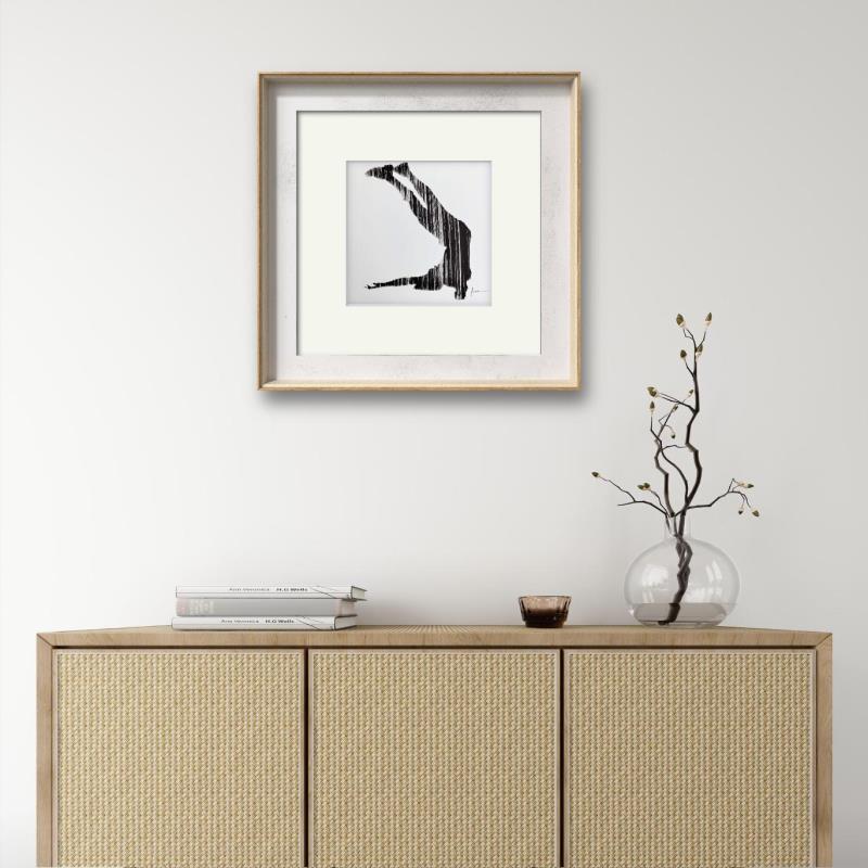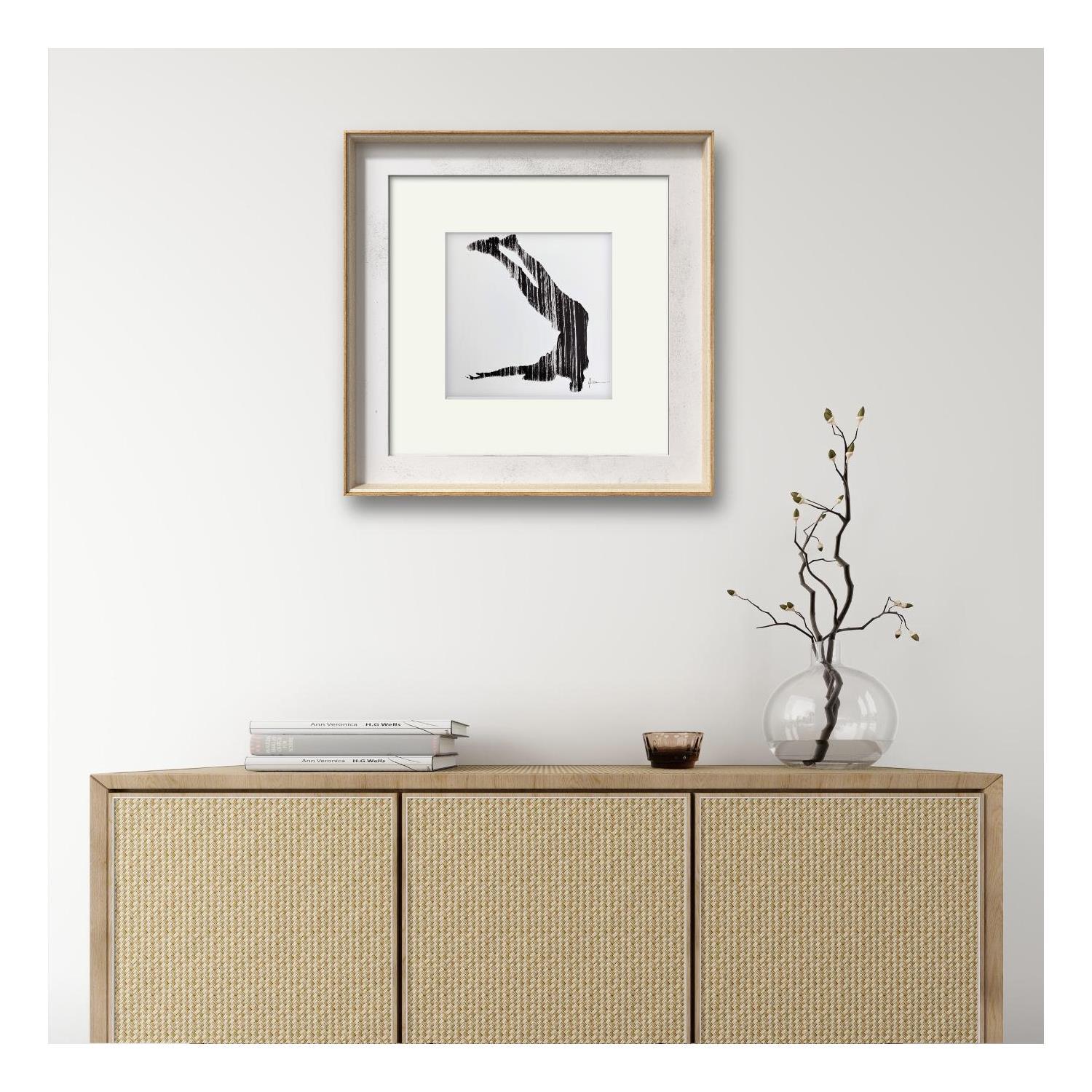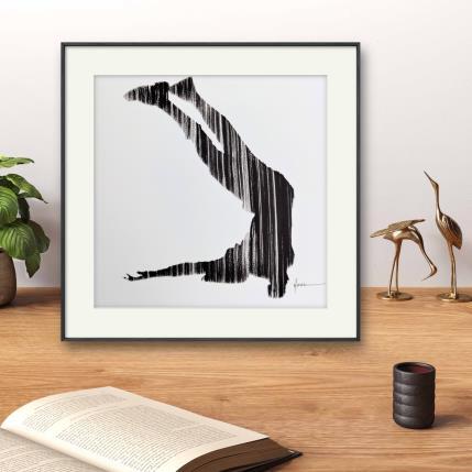 Der Künstler verwendete Tinte auf Papier, um dieses figurative, kleinformatige Gemälde zu schaffen.