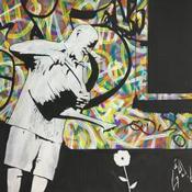 Der Künstler verwendete Graffiti, Acryl auf Leinwand, um dieses Kleine Gemälde zum Thema "Alltagsszenen" anzufertigen.