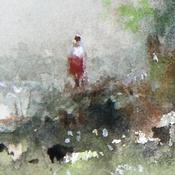 Der Künstler verwendete die Aquarelltechnik, um dieses kleinformatige Gemälde im Stil des Impressionismus mit dem Thema Landschaften zu schaffen.