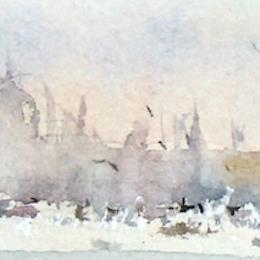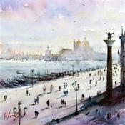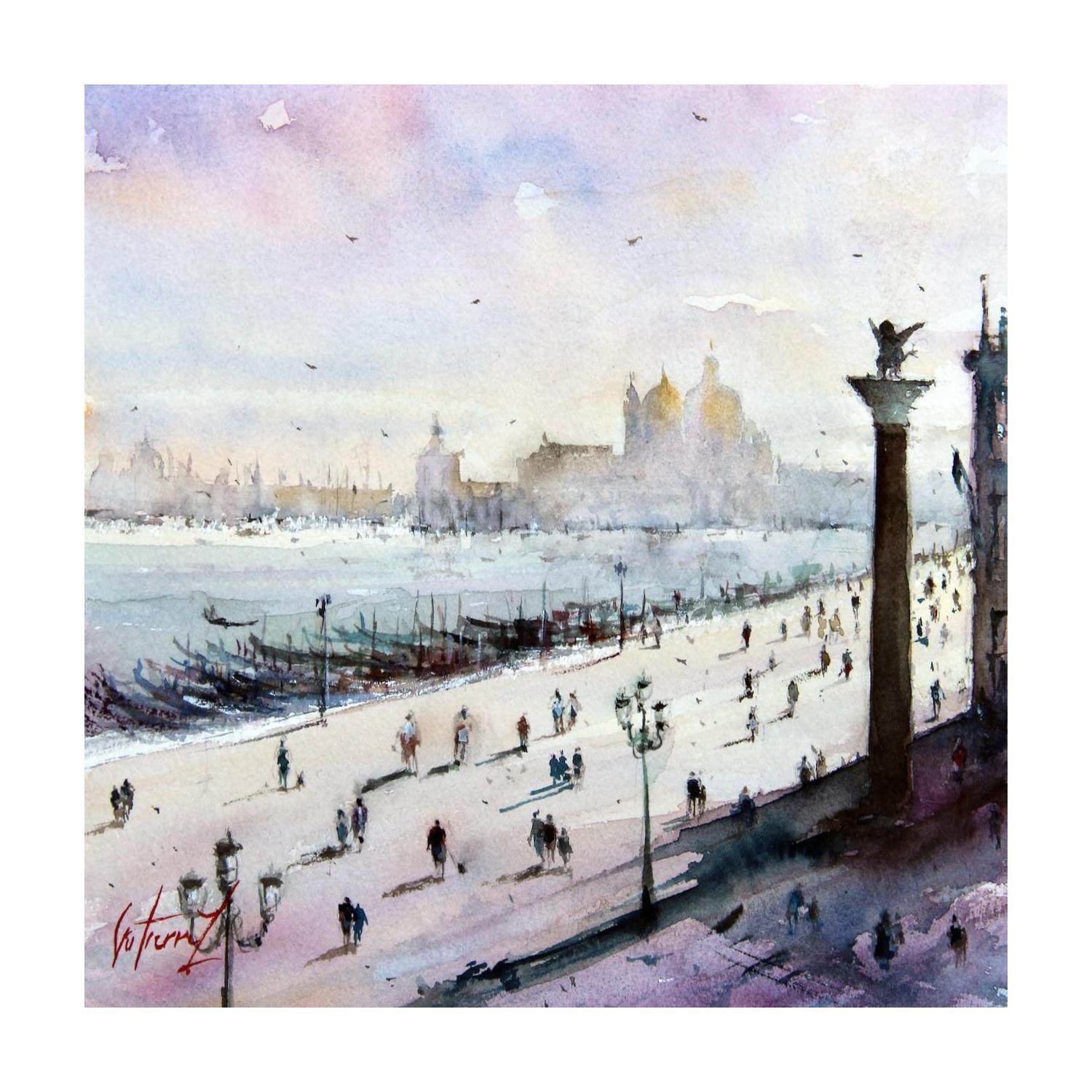 Vue sur le quai des EsclavonsGemälde Vue sur le quai des Esclavons von Gutierrez | Gemälde Impressionismus Landschaften Urban Aquarell