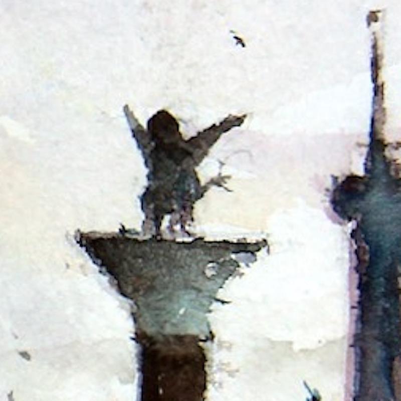 Der Künstler verwendete die Aquarelltechnik, um dieses kleinformatige Gemälde auf Papier im Stil des Impressionismus mit dem Thema Urban zu schaffen.