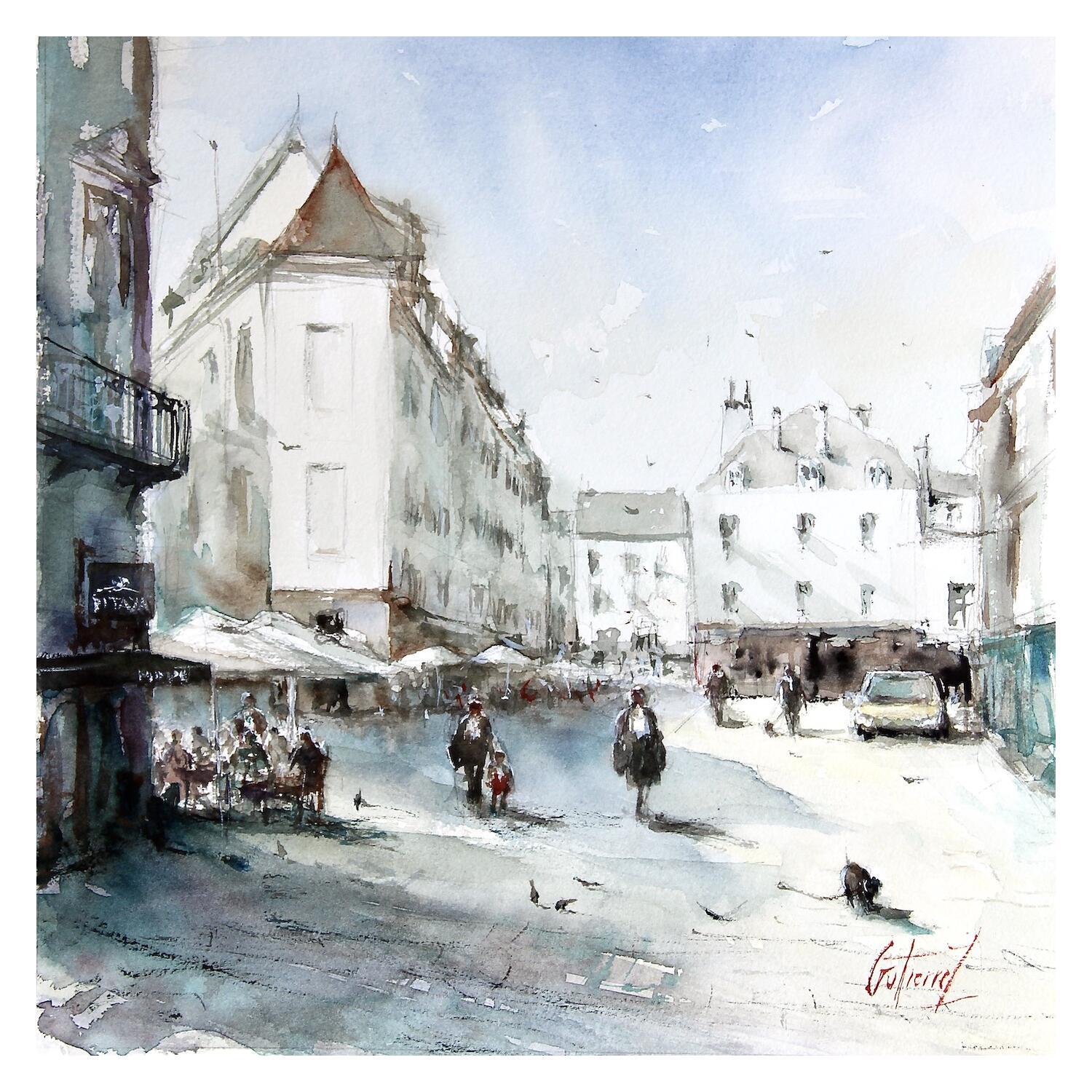 Dieses einzigartige und originelle zeitgenössische Kunstwerk "La rue du commerce à Tours" wurde von dem zeitgenössischen Künstler Gutierrez geschaffen.