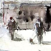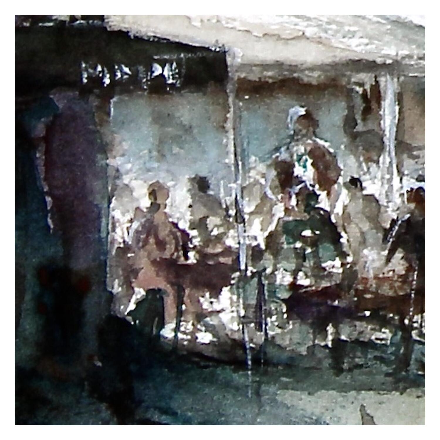 Der Künstler verwendete die Aquarelltechnik, um dieses kleinformatige Gemälde im Stil des Impressionismus mit dem Thema Urban zu schaffen.