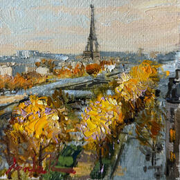 Gemälde Autumn in Paris  von Xanlar | Gemälde Impressionismus Landschaften Architektur Öl