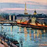 Dieses einzigartige und originelle zeitgenössische Kunstwerk „F4 „Paris at Dusk“ 107-21551-20251016-21“ wurde vom zeitgenössischen Künstler Xanlar geschaffen. Der Künstler verwendete Ölfarbe auf Leinwand, um dieses figurative, kleinformatige Gemälde zu schaffen.