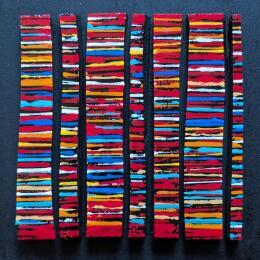 Dieses einzigartige und originale zeitgenössische Kunstwerk "Bc7 fine rouge bleu orange" in dem Stil "Materialismus" wurde von dem zeitgenössischen Künstler Langeron Luc kreiert.