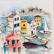 Dieses einzigartige und originale zeitgenössische Kunstwerk "Les mystères d ' un port" in dem Stil "Naive Kunst" wurde von dem zeitgenössischen Künstler Colombo Cécile kreiert.