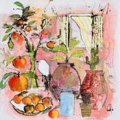 Dieses einzigartige und originale zeitgenössische Kunstwerk "Les mandarines du jardin" in dem Stil "Naive Kunst" wurde von dem zeitgenössischen Künstler Colombo Cécile kreiert.