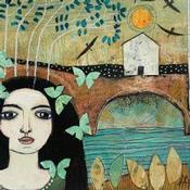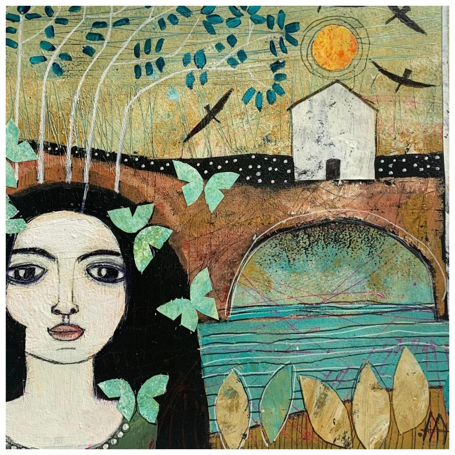 Gemälde Mi casa en el puente von Arias Parera Almudena | Gemälde Naive Kunst Porträt Landschaften Acryl