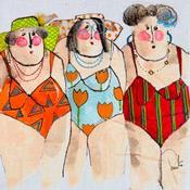 Der Künstler verwendete Acryl, Collage, Tinte, Pastell, Aquarell auf Leinwand, um dieses Kleine Gemälde zum Thema "Porträt, Alltagsszenen" anzufertigen.