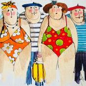 Les couplesGemälde Les couples von Colombo Cécile | Gemälde Naive Kunst Porträt Alltagsszenen Aquarell Acryl Collage Tinte Pastell